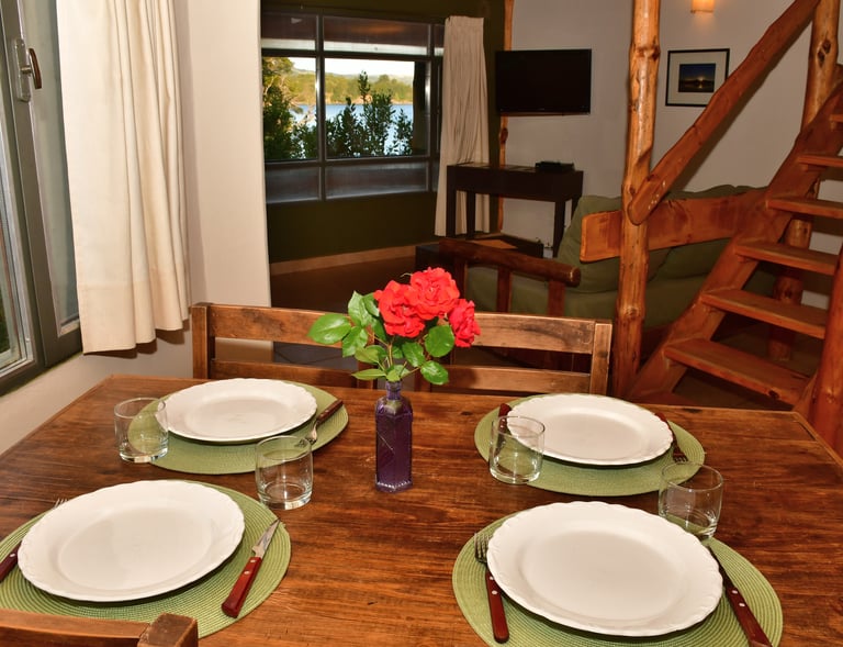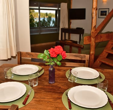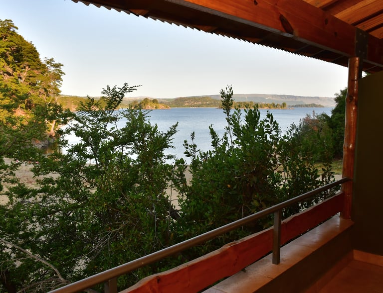 En Villa Pehuenia, nuestras cabañas están frente al lago, rodeadas de bosques y montañas.